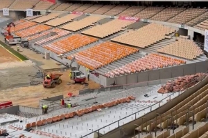西班牙媒体Relevo记者José Manuel Rodríguez社媒晒出拉卡图哈球场的现状,距离国王杯决赛还有23天,但这座球场还在施工,尚未铺设草皮。