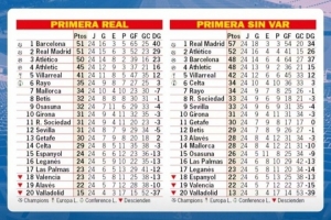 体育资讯2月19日讯 《阿斯报》统计了如果没有VAR介入的西甲积分榜情况,皇马将领先巴萨多达9分。