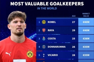 体育资讯4月5日讯 德国转会市场今天盘点了世界足坛门将球员的身价排名,多特蒙德的科贝尔以及阿森纳的拉亚4000万欧元并列第一。