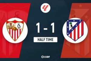 体育资讯4月6日讯 北京时间4月6日22:15,西甲第30轮,马德里竞技做客挑战塞维利亚。上半场,阿古梅推射为塞维利亚首开记录,加拉格尔造点,阿尔瓦雷斯主罚扳平比分。上半场比赛结束,马竞暂时1-1战平塞维利亚。