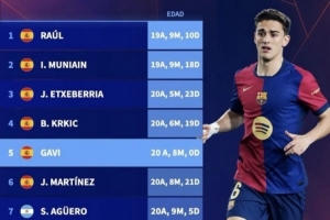 体育资讯4月8日讯 上周巴萨主场1比1战平皇家贝蒂斯。这是加维代表巴萨征战西甲的百场里程碑。据德国Transfermarkt数据统计,西甲历史最年轻达成百场球员排行榜中,皇马传奇球星劳尔19岁9个月10天居首,加维排名第5.