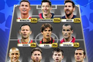 外媒欧冠各位置进球最多11人↓