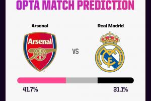 Opta超级计算机预测阿森纳本场胜率41.7%