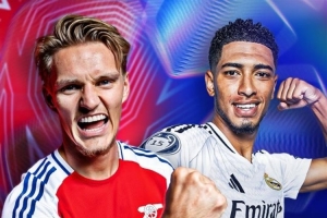 欧冠官方社媒晒出海报预热比赛,厄德高、贝林厄姆出镜。