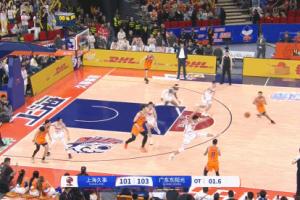 “第四节仅剩13秒时上海男篮落后4分似乎已大势已去,先是王哲林快速得两分,随后广东宏远发边线球,哈维抢断快攻一条龙扳平比分,将比赛拖入加时。在加时赛最后时刻,上海男篮落后2分只能对胡明轩采用犯规战术,胡明轩赛季罚球命中率高达88.5%,犯规犯在胡明轩身上几乎等于送分,但没想到胡明轩居然也会关键时刻手软,两罚不中,给上海男篮留下1.6秒。