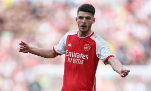 体育资讯4月9日讯 欧冠1/4决赛首回合比赛,赖斯任意球双响,目前阿森纳3-0领先皇马。