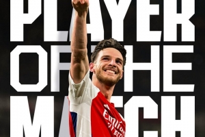 体育资讯4月9日讯 阿森纳官方消息,赖斯被评为球队3-0皇马的队内最佳球员。
