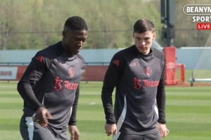梅努因肌肉受伤缺席近期多场比赛,Beanyman Sports晒出视频截图,确认这位19岁的曼联中场今日回归训练。