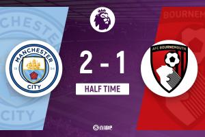 半场-曼城暂2-1伯恩茅斯 哈兰德单刀梅开二度谢尔基两送助攻