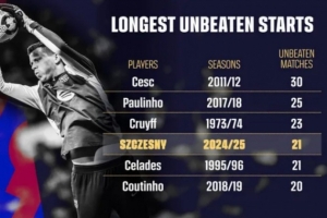 体育资讯4月10日讯 北京时间今晨,本赛季欧冠1/4决赛首回合,巴萨主场4-0击败多特蒙德,至此在什琴斯尼出场的情况下,巴萨已21场保持不败,这一统计数据现列巴萨队史第4。
