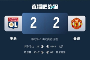 体育资讯4月11日讯 欧联杯1/4决赛首回合,曼联2-2客平里昂,次回合双方将移师老特拉福德球场交手。
