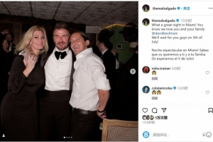 萨尔加多社媒分别晒出与贝克汉姆、梅西的合照,并配文:“在迈阿密的美妙夜晚!我们爱你和你的家人,贝克汉姆。”