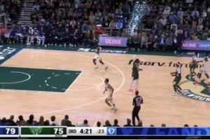 信手拈来!库里推反击被提前犯规 超远三分随手一扔钻入网窝