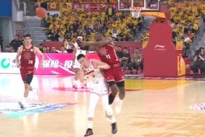 第三节初,胡明轩侧身撞翻空中的迪亚洛。迪亚洛重重摔在地上,滚到场边,起身后超级气愤欲找胡明轩理论。裁判回看后,吹罚胡明轩违体犯规。