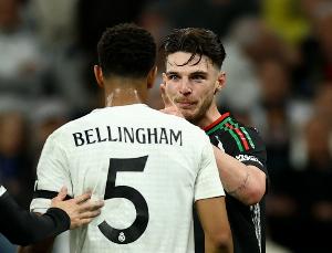 体育资讯04月17日讯 欧冠1/4决赛已经结束,阿森纳凌晨在客场2-1,两回合5-1淘汰皇马晋级半决赛。在中场的正面对决中,贝林厄姆面对赖斯再次出于下风。