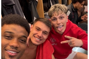 因伤缺席的阿玛德社媒晒出与乌加特、加纳乔的合照,并调侃道:“曼联永远不会放弃,祝贺乌加特打进你那该死的进球(乌加特欧战首球),加纳乔错失那个机会气死人了,你让我们心痛。”