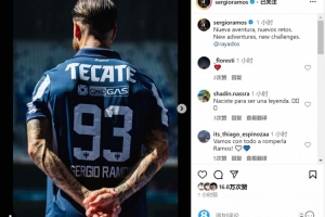 拉莫斯社媒晒出身穿蒙特雷93号球衣的背影照片,配文:“新的冒险,新的挑战。”