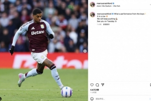 体育资讯4月20日讯 英超第33轮,维拉主场4比1大胜纽卡,豪取联赛五连胜。赛后,拉什福德更新社媒表示将继续全力冲刺。