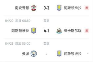 体育资讯04月20日讯 英超第33轮,阿斯顿维拉4-1击败纽卡,拿下争五对手。