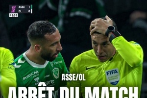 体育资讯4月21日讯 法甲第30轮,圣埃蒂安主场对阵里昂。在助理裁判遭投掷物袭击后,当值主裁弗朗索瓦-莱泰西耶要求所有球员返回更衣室。