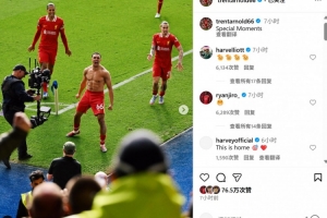本场比赛阿诺德替补登场打进制胜球,赛后他也在个人社媒晒出进球后脱衣庆祝照片,配文写道:“特殊的时刻!”