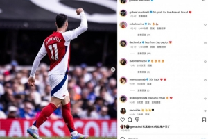 本场比赛马丁内利取得进球,这也是他枪手生涯各项赛事第50粒进球。赛后他在个人社媒晒出本场照片,配文写道:“打进为阿森纳效力第50球,无比自豪!”