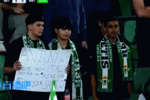 体育资讯2月21日讯 欧协联贝蒂斯vs根特次回合,下半场,镜头给到看台,两位球迷举牌,写道:“安东尼,我们从意大利来!只为了你!请赠予我们你的球衣!”