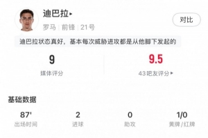 体育资讯2月21日讯 欧联杯淘汰赛附加赛,迪巴拉2球,罗马3-2波尔图。