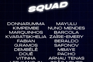 前锋:克瓦拉茨赫利亚、贡萨洛-拉莫斯、登贝莱、杜埃、巴尔科拉、姆巴耶