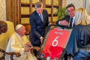 伯纳姆在接受BBC采访时表示:“马丁内斯对来自自己国家的教皇的看重是显而易见的,能够在梵蒂冈送出这份礼物是一件很重要的事情。”