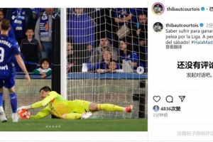 库尔图瓦社媒晒出扑救的照片,配文:“懂得如何承受磨难才能获胜,继续为联赛冠军而战。现在让我们专注于周六的决赛(国王杯对阵巴萨)!”