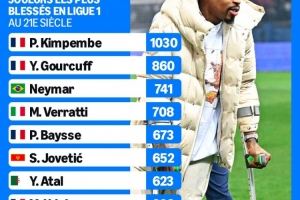 体育资讯4月24日讯 数据显示,由于跟腱断裂导致缺阵两个赛季,金彭贝成为21世纪法甲缺阵时间最长的球员。