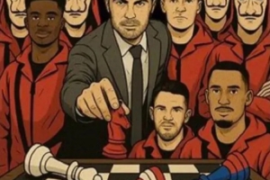这些设计灵感来源于热门Netflix剧集《纸钞屋》(La Casa de Papel),其中两款tifo将标题改为“米克尔之家”(La Casa de Mikel)。另外两款设计中包含棋盘元素,其中一条信息写着“他们一个个倒下”,而另一款则没有任何文字。棋盘元素似乎是参考了皇马球迷在上周伯纳乌四分之一决赛次回合比赛前展示的横幅。