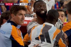 吕迪格吃到红牌因投掷物品和过激行为被罚出场。