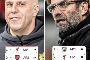 如今,斯洛特只需带领利物浦拿到80个积分,就足以确保夺冠。目前利物浦本赛季的最高理论积分为94分。