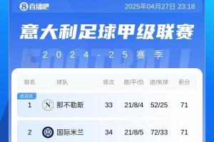 体育资讯04月27日讯 当前,意甲前4席位竞争激烈。那不勒斯、国米几乎锁定前2,而剩下两名席位最有可能从亚特兰大、博洛尼亚、罗马、尤文、拉齐奥和佛罗伦萨这六支球队中决出。这几支球队的最大分差仅有5分,依旧存在悬念。