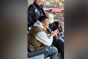 欢迎回家!记者:河南队钟义浩现场观战海牛,海牛进球后他很开心
