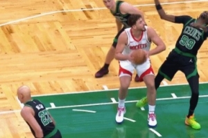 夸张了!布歇防守对抗后仰倒地 被吹假摔送火箭1分