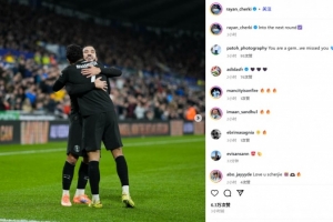 传射建功!曼城中场谢尔基社媒晒同马尔穆什相拥庆祝:晋级下一轮