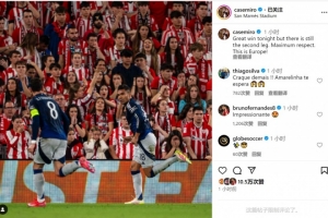 卡塞米罗社媒晒出庆祝进球的照片,配文:“今晚的胜利很棒,但还有次回合比赛。最大的尊重,这就是欧战!”