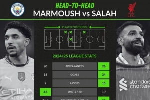 体育资讯2月22日讯 曼城将在本轮英超焦点战主场迎战利物浦,马尔穆什和萨拉赫将上演开罗德比,whoscored也列出了两人本赛季联赛关键数据对比。