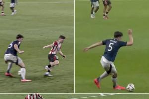 体育资讯05月02日讯 欧联杯半决赛首回合,曼联客场3-0大胜毕尔巴鄂竞技,一只脚已踏入决赛。上半场曼联的首粒入球来自马奎尔的一次边路晃动传中,引发热议。