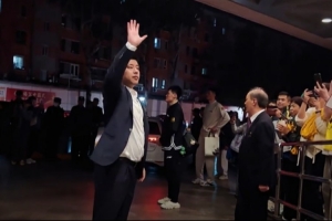 山西队主帅潘江现身,鞠躬向球迷们的支持表示感谢,并挥手致意。