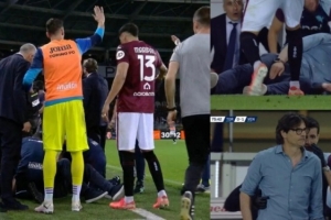 今天凌晨进行的第34轮意甲联赛,都灵主场1-1战平威尼斯。比赛第75分钟,都灵获得一个点球。场边的都灵主帅瓦诺利也许是太过激动,突然头晕倒地。这让人们非常担心,两队的队医都上前帮助瓦诺利。而在接受初步检查后,瓦诺利起身向全场挥手致意,表示自己没问题。