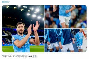 曼城中卫鲁本-迪亚斯社媒晒出谢场照片,并写道:“任务尚未完成,还剩3场比赛(联赛)。”