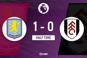 上半场伤停补时1分钟,半场结束,维拉暂1-0富勒姆。