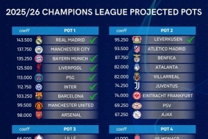目前,下赛季欧冠36强已确定9席。