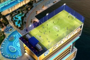 这座耗资百万英镑级别的建筑群由著名设计公司Gensler操刀,将矗立于迪拜海事城,包含1400套海景奢宅,户型涵盖一至三居室。全落地窗设计尽揽海天胜景,室内装潢采用顶级建材,处处融入切尔西元素。最夺目的当属楼顶的标准足球场,不仅铺有切尔西队徽,还环绕着雄狮雕塑,堪称中东蓝军球迷的梦幻居所。