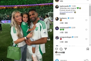 马赫雷斯妻子泰勒-沃德社媒晒出一家人赛后的合照,并写道:“昨天是神奇的一天,永远为你感到骄傲,马赫雷斯。”