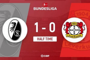 半场战罢,勒沃库森暂0-1弗赖堡。